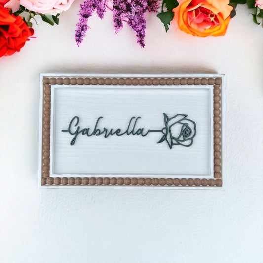 Rustic Beaded Edge Frame with Customizable Acrylic Flower Name